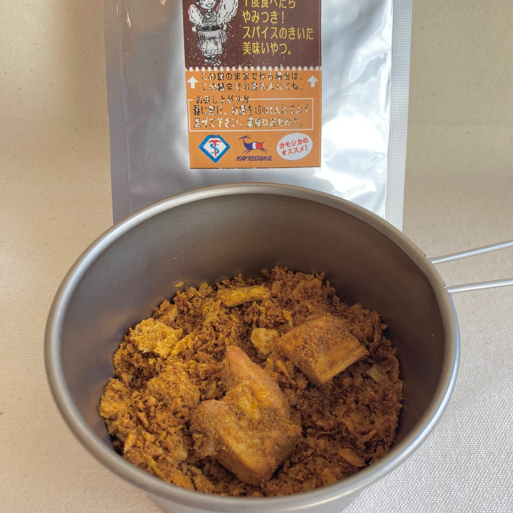 長野県戸隠の山宿で提供されるスパイスカレーがフリーズドライになりました。ネパールカレーを手本に10数種の香辛料と玉ねぎ・鶏肉などを具材にした辛口カレーです。元々は戸隠小舎とカモシカスポーツの共同商品なのですが、ハイカーズデポでも取り扱わせて頂けることになりました。