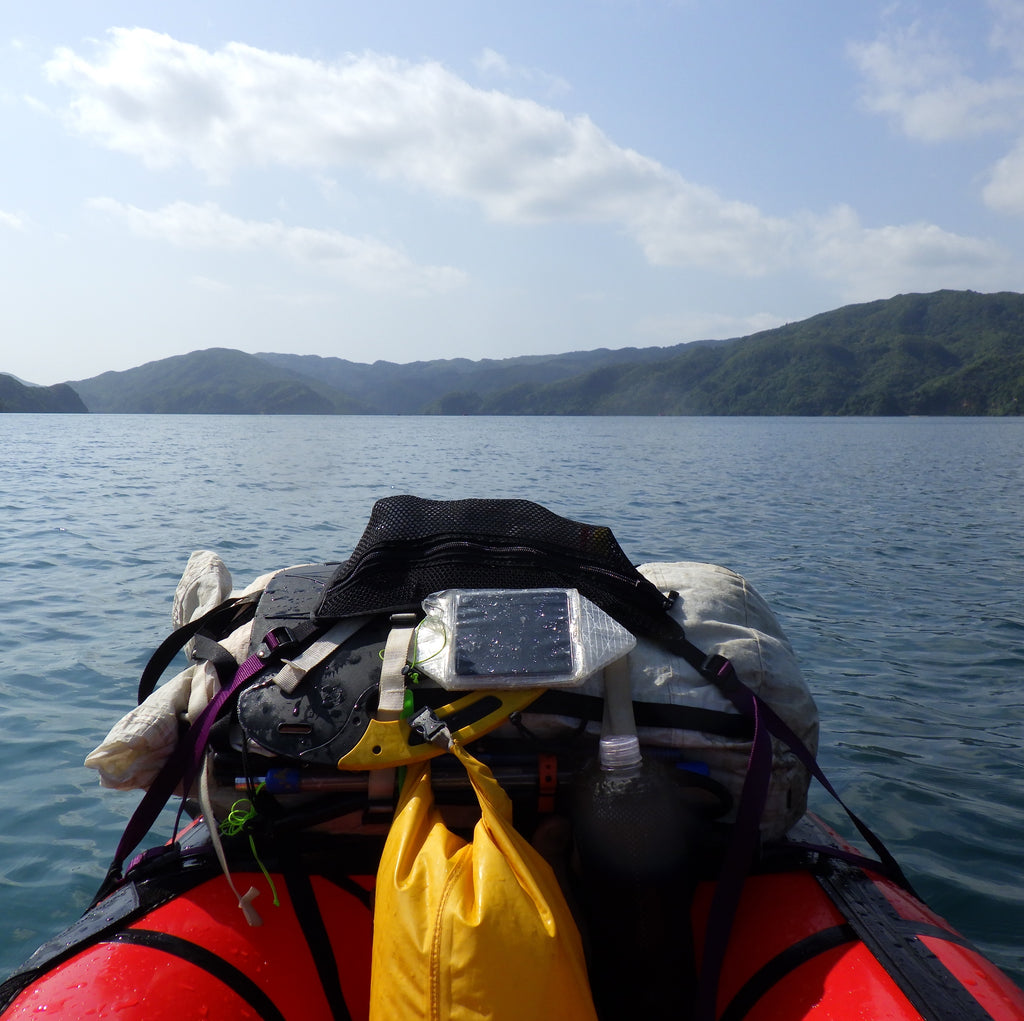 ペッチャンコの収納状態から使う時には広げて大きくする、太陽光で充電可能なソーラーパネル付き折り畳みLEDランタン。眠れない深山の夜にヘッドライトの電池残量を気にせず読書ができます。夏なら日中の行動時間内でフル充電、南国の日差しなら早春や晩秋でも大丈夫。防水性能はIP67なので、多少の雨くらいなら大丈夫です。