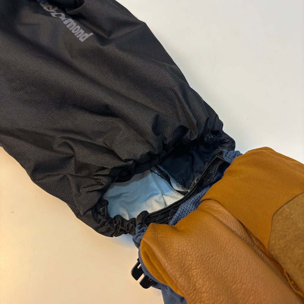 パーム側に強く軽いゴートレザーを使用したソフトシェルはアイゼンやスノーシューなどの脱着時に操作性を損なわず、強風時など手の冷えを感じた際にはミトンフードを被せることで氷点下に十分対応する保温力を発揮します。