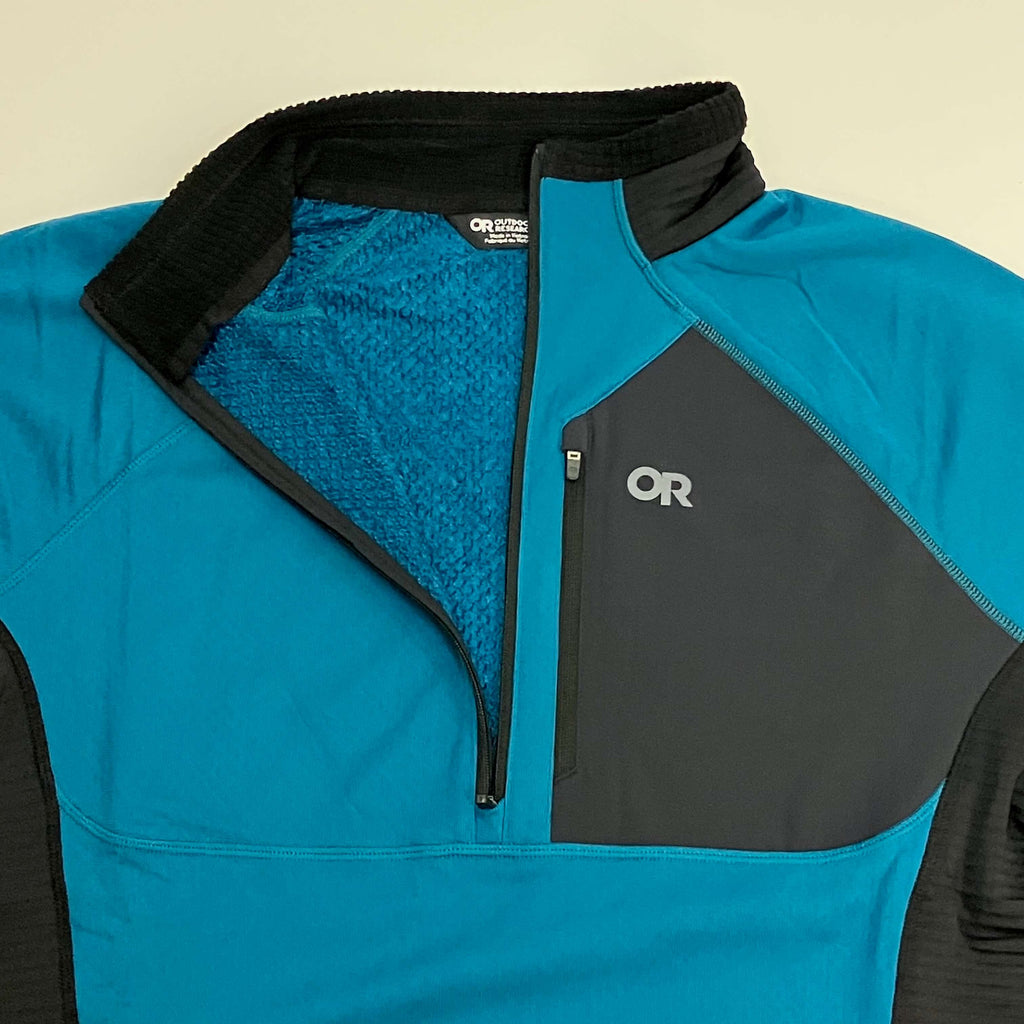晩秋から早春まで寒冷期のトップスに最適な薄手のテクニカルフリース。patagoniaレギュレーターシリーズに端を発する保温性と通気性のバランスを考慮したグリッドフリースにおけるOutdoor Researhの進化版。この生地厚のモデルが結局のところ寒冷期は最も使い回しに優れています。もう少し保温性を上げたいならば内側にメッシュインナーを着てもよし、運動量が高いならば単体で着てもよし、これにベストインサレーションとシェルがあれば、一般的な冬季ハイキングの行動中のレイヤリングはおおきく問題はないはずです。