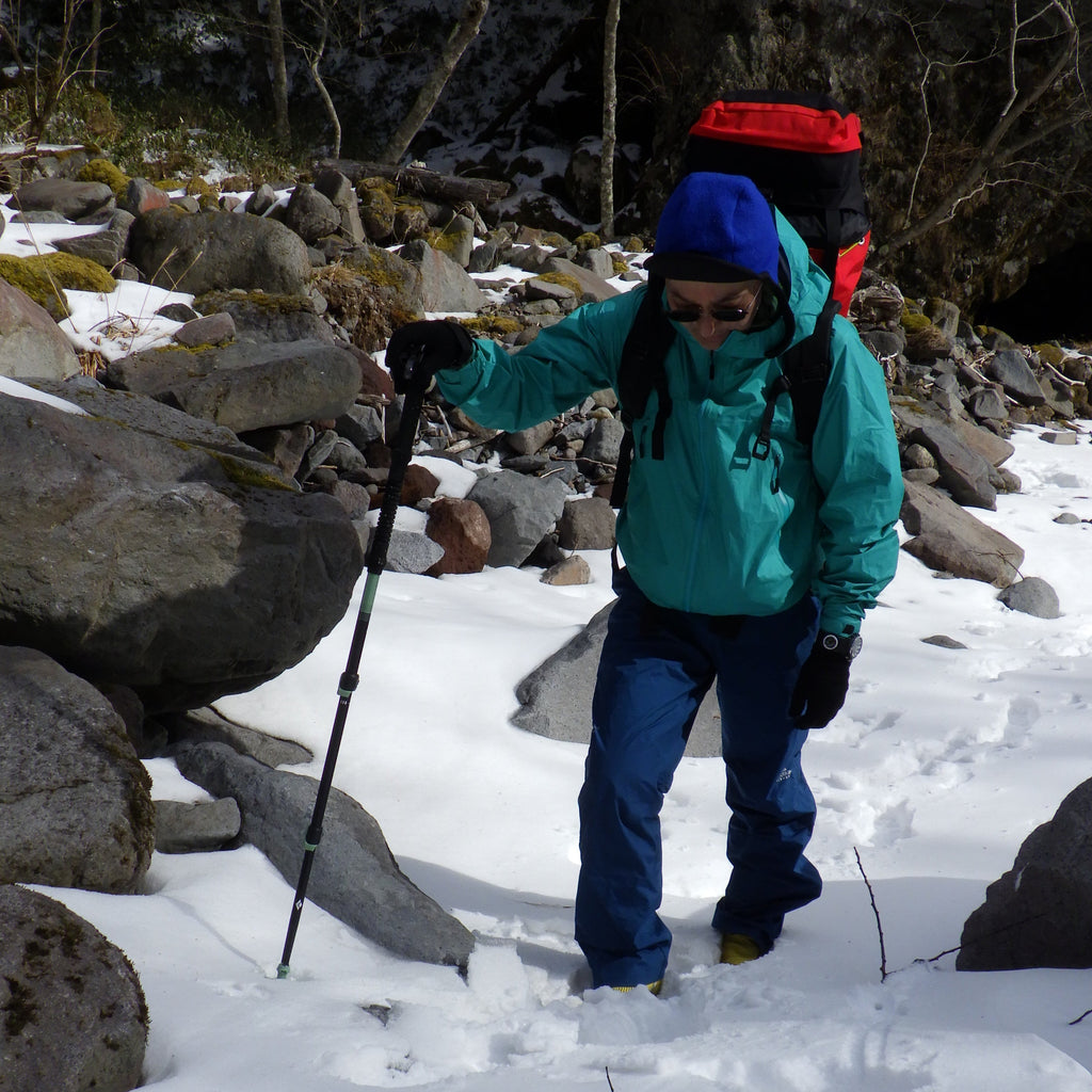 278ウィペットアタッチメント(セルフアレスト用ピック)を装着することで、急傾斜の雪面でも安定した行動をサポートしてくれる4シーズン対応3セクションポール(シングルモデル)。ブラックダイアモンドのウィペットシリーズはBCスキーヤー、BCスノーボーダーには春のツアーなどで高い支持を得てきましたが、PCTハイカーが残雪のシエラ越えで使うなどハイカーにとっても実用性が高いポールです。ダガーポジションがとりやすいことから春の残雪期におけるハイキングギアとして活用の場は少なくないはずです。