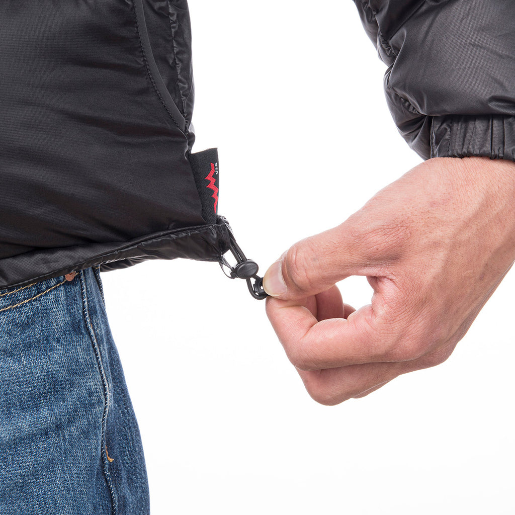 見ただけでも暖かさが伝わるハイロフトな作りながら、850+フィルパワーの高品質なグースダウンと軽量な生地を採用することで、軽さの面においても他に引けを取りません。冷気が侵入しやすいフロントジッパーにはダウン入りのドラフトチューブが縫い付けてあるので、ウェアの保温性を高めてくれます。またジッパー開閉時の噛み込みを防ぐため、そのドラフトチューブにコシのあるテープを内包することで操作性にも優れます。寝袋作りで培われたダウン製品の基本は、ウェアにも生かされているのです。