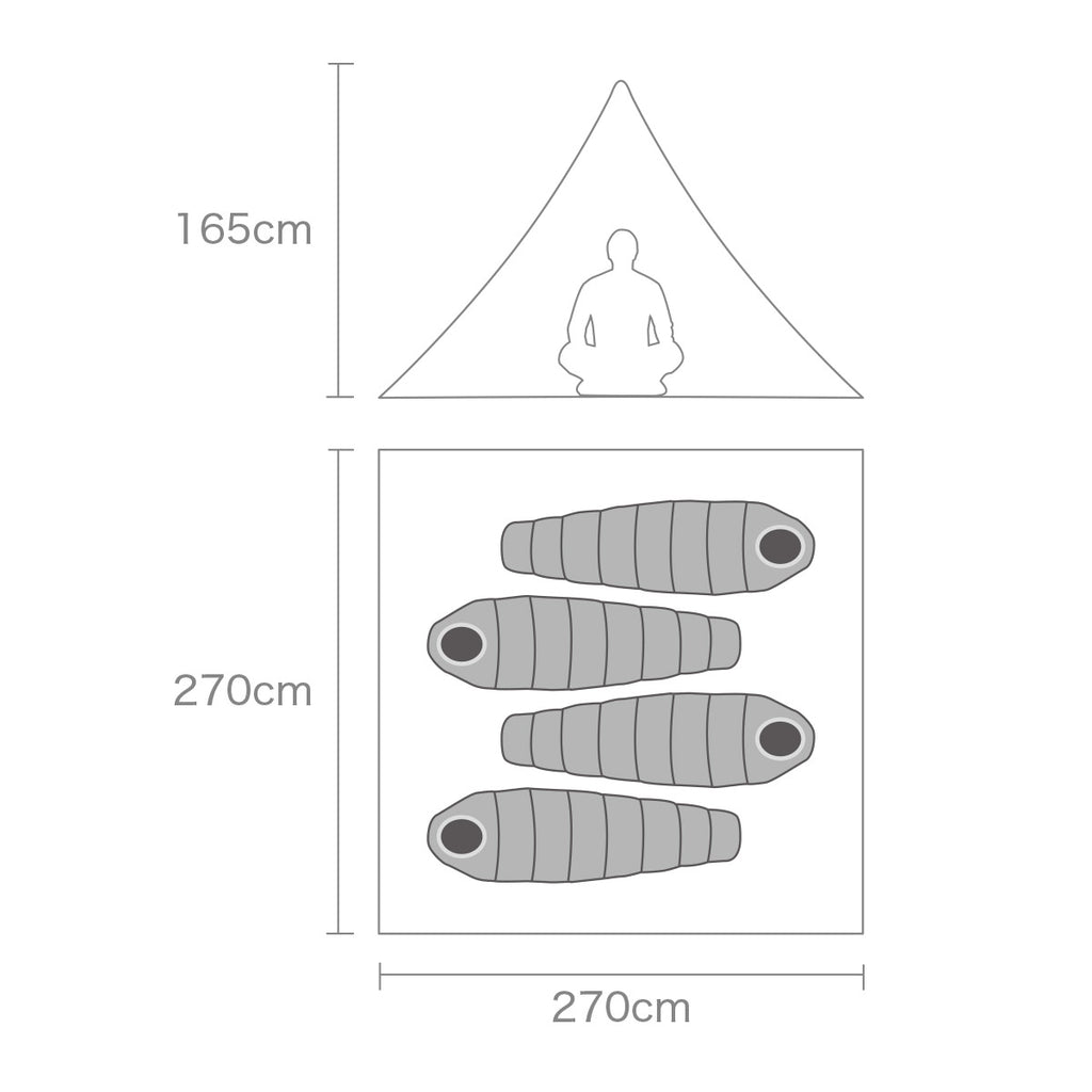 使用時サイズ:270cm x 270cm x 高さ165cm