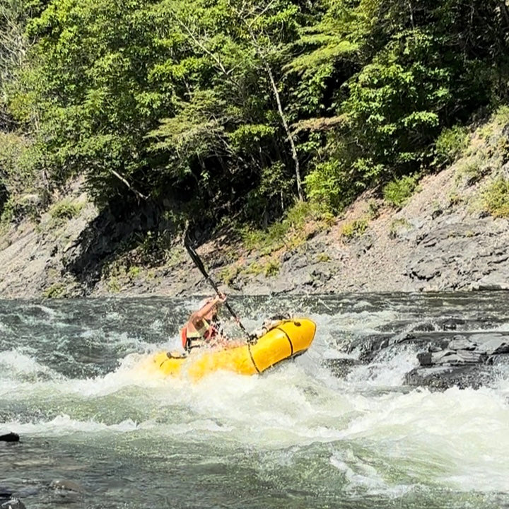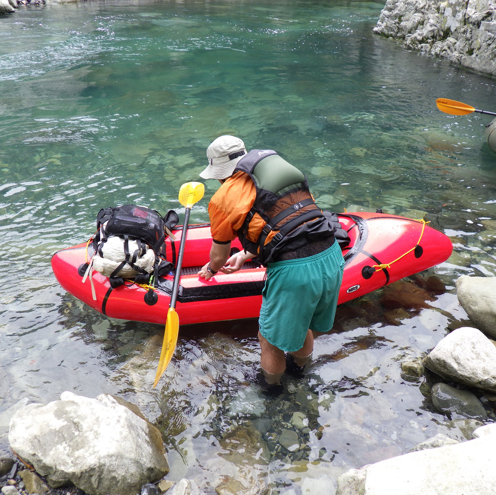 やや上向きなバウと尾のように伸びたスターン形状により、静水から瀬を楽しむリバーツーリングまで幅広く対応してくれるパックラフト。収納サイズを犠牲にしないクルーザーデッキは着脱可能なので、暑い夏や静かな湖でのパドリング時には全開にして開放感を楽しみ、寒い冬や瀬が続く流れでは全閉したスプレースカートが浸水や冷たい水飛沫を防いでくれます。
