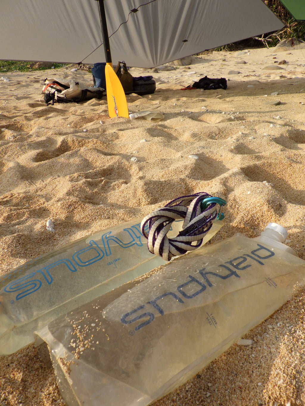 折り畳み水筒のパイオニアplatypus。プラティボトル2L(最大2.5L)という名前通りの容量なので、予備の水を運搬するウォーターキャリーとして使っている人も多いかと思います。