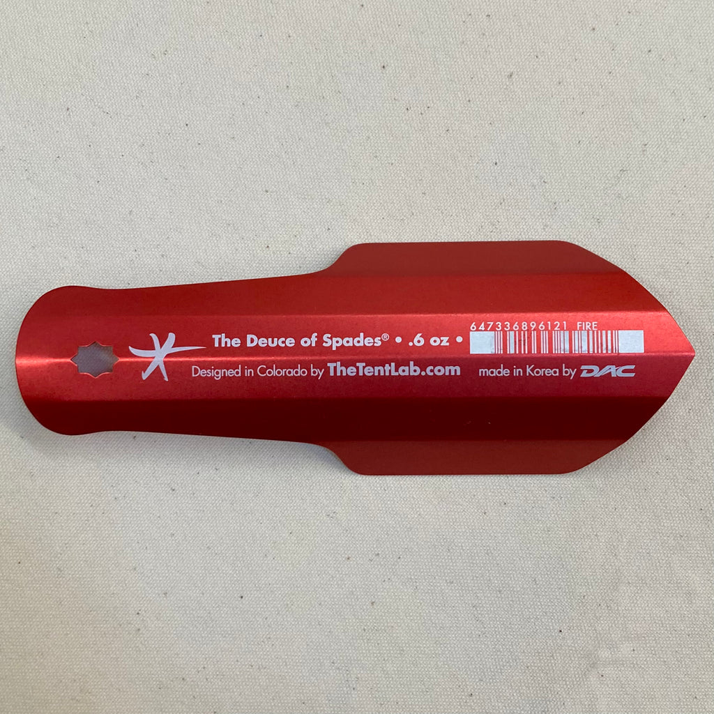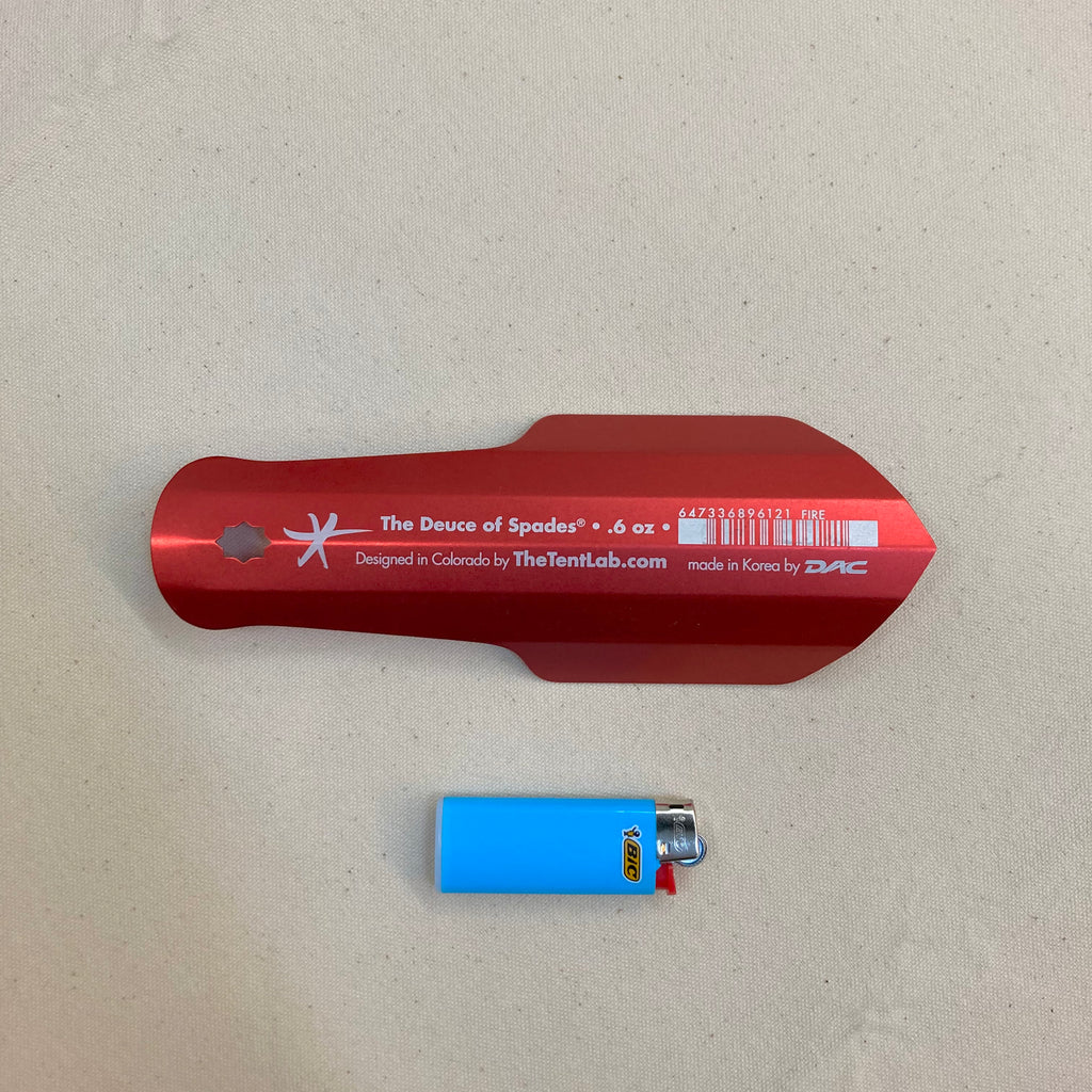 トイレのためだけに道具が増えることへ抵抗感を感じるなら、テント設営用アンカーペグやアルコールバーナー用風防(わずかな面積ですが)としてどうぞ。豪胆な人なら食事用のスプーン…にも良いかもしれません。ちなみに商品名のThe Deuce of spadesはトランプのスペードの2を指します。トランプ占いにおいて同カードは「決断の時」を意味するらしいですが、用途と相まってフフッとなってしまいます。