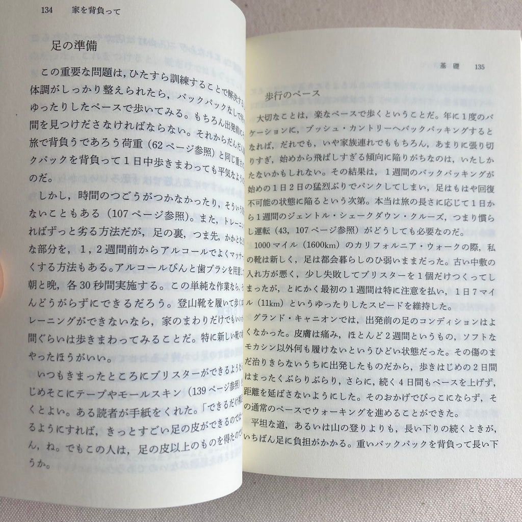 永らく絶版となっていたため図書館などでしか読むことができなかった名著が、文庫版サイズとなって山と溪谷社から復刻。ハイカーのバイブルとして広く知られる当書はただの道具紹介本ではなく、歩き方や高度順応、道具の選び方から摂取する食品やカロリー数についてまで、ハイキングの技術的な部分を解説してくれています。