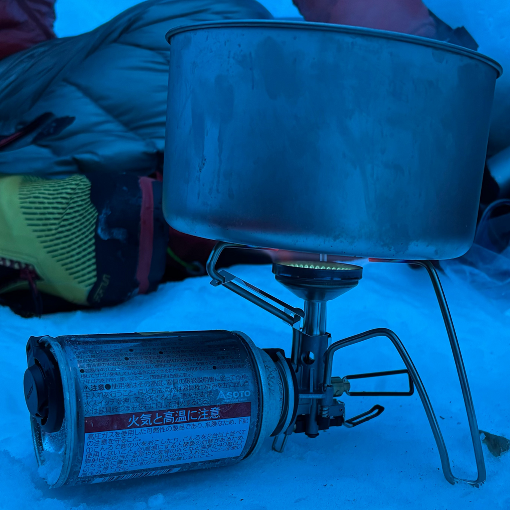 ここで紹介するソトのトライトレイルは、CB缶を燃料とするバーナーにおいて現在最軽量モデル。ただ軽いだけでなくマイクロレギュレーター機能(低温環境下や連続使用時でも安定した燃焼を可能とするガス圧調整機構)も備わっているので、同社CB缶であるCB TOUGH 125缶と組み合わせれば寒冷期のハイキングでもお使い頂けます。付属の自動着火装置は少し長いレバーで動作させるので、グローブをした状態でも操作感は大丈夫。